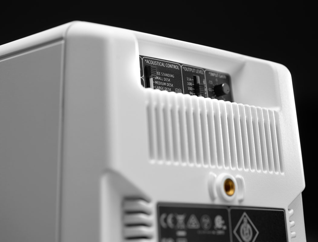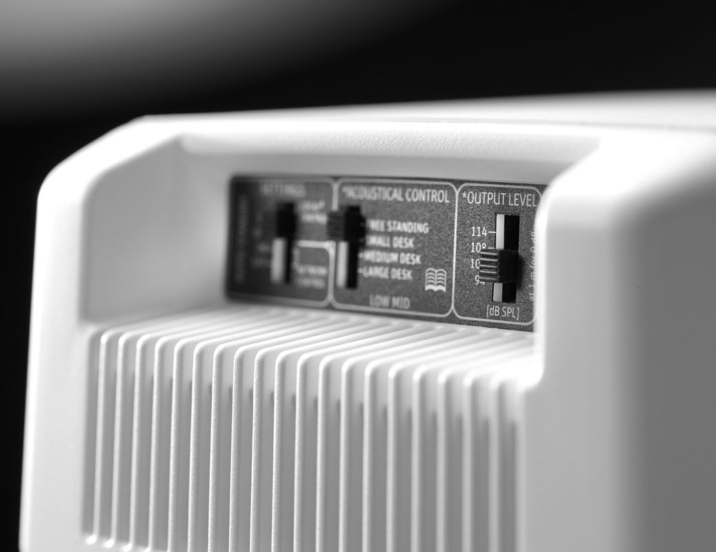It might be a project studio, an outside broadcast van, a corner at work or just a brick building: The room defines the sound. Surfaces and corners in the room cause interference, diffraction, reflection, and refraction: all are forms of distortion. For a really true sound, without acoustic-physical “accidents”, you normally need expensive equipment plus plenty of time and expertise to align it correctly – or smart algorithms. An easy adjustment to the monitor position (free standing, small/medium/large desk) is possible via the rear "Acoustical Control" switch.